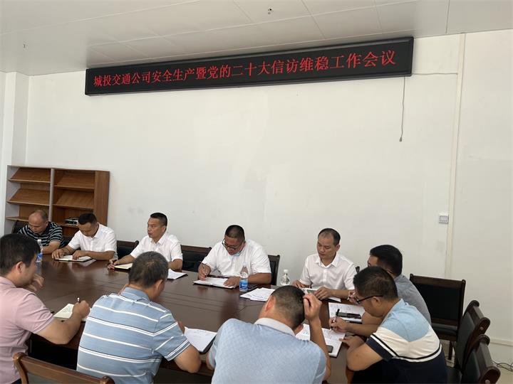 同日,交通公司召開安全生產與黨的二十大信訪維穩工作會議。會議指出,做好安全生產與黨的二十大信訪維穩工作責任重大,要站在講政治、顧大局的高度,保持清醒頭腦,認清嚴峻形勢,切實增強“時時放心不下”的政治責任感,嚴而又嚴、實而又實地防風險、保安全、護穩定,堅決防止各類安全事故、信訪事件發生,努力為黨的二十大勝利召開營造安全穩定的環境。
